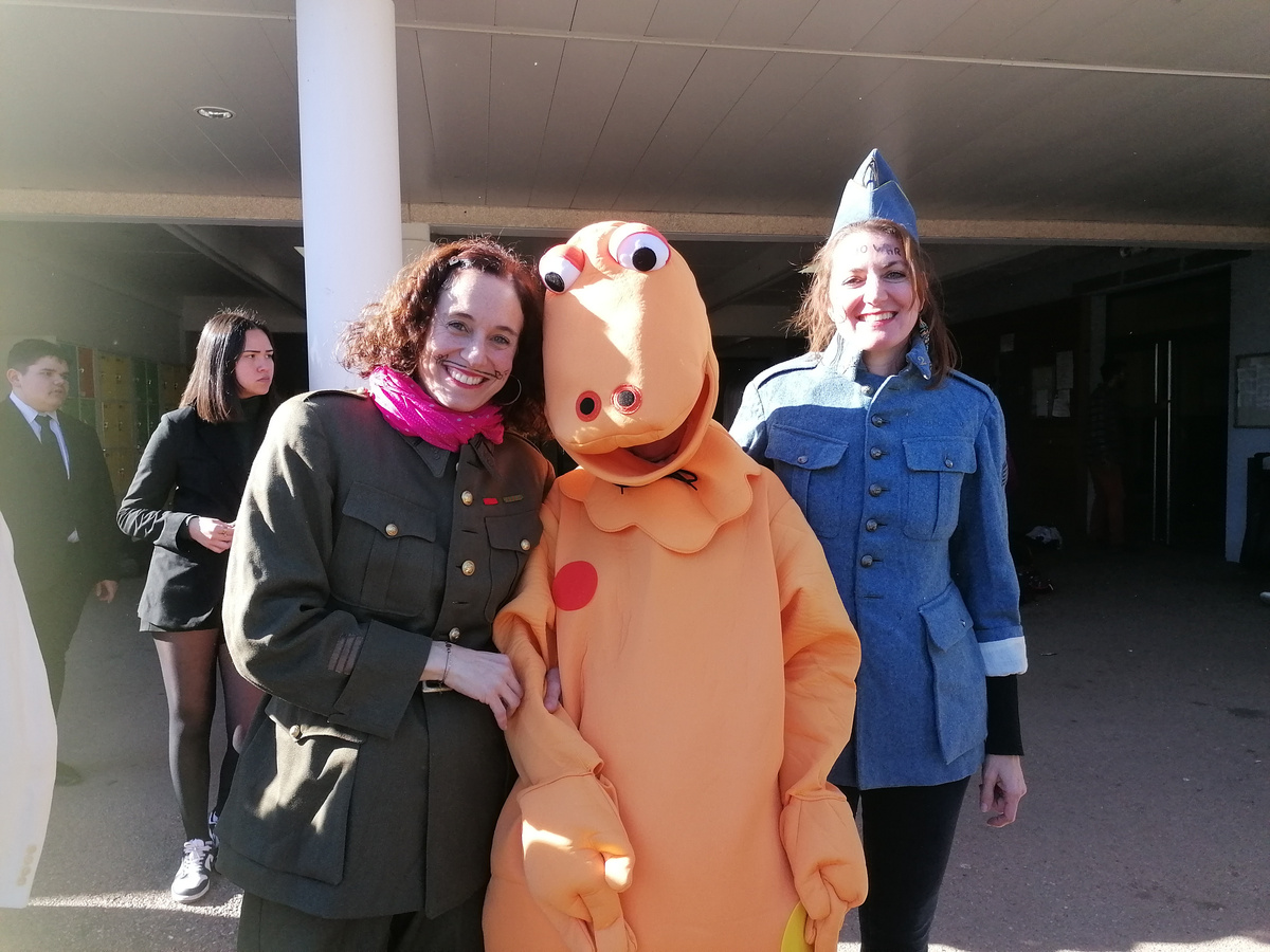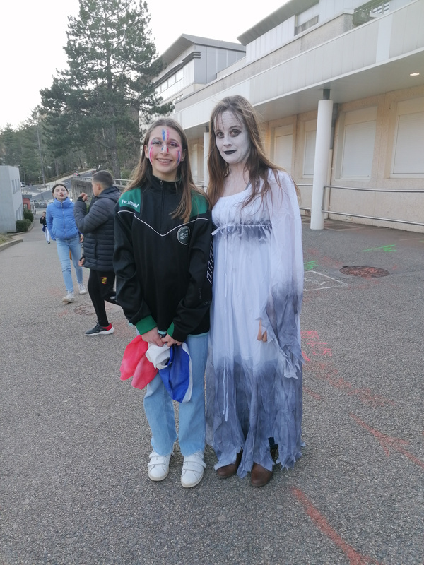 Mme Mielle : Il y a deux concours. D’abord, la meilleure classe déguisée. A l'origine, ce n’est qu'une seule classe, mais là, on n’a pas su départager donc deux classes ont gagné. Le lot, c'est qu'on les prenne en photo et on leur offre une photo en format A4. Ensuite, il y a 5 lots individuels pour les meilleurs déguisements au collège et au lycée.