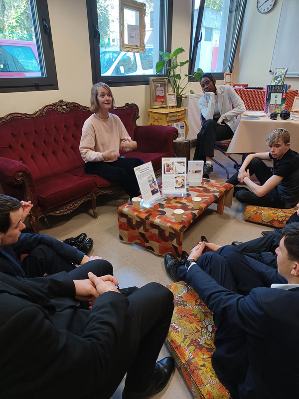Marie Vingtras échange avec les secondes au resto librairie de la cité scolaire, le Cook’n Book. Crédit photo : Mme Prévost-Jégu